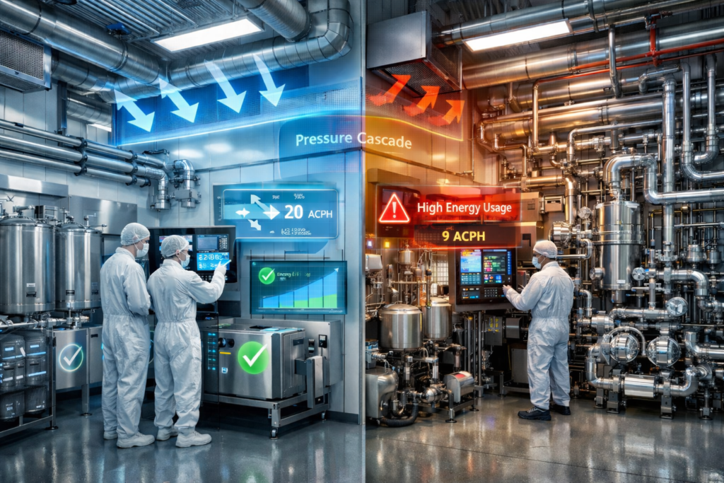 - Over-engineered cleanroom spaces exceeding required ISO/GMP classifications, increasing capital and operational costs